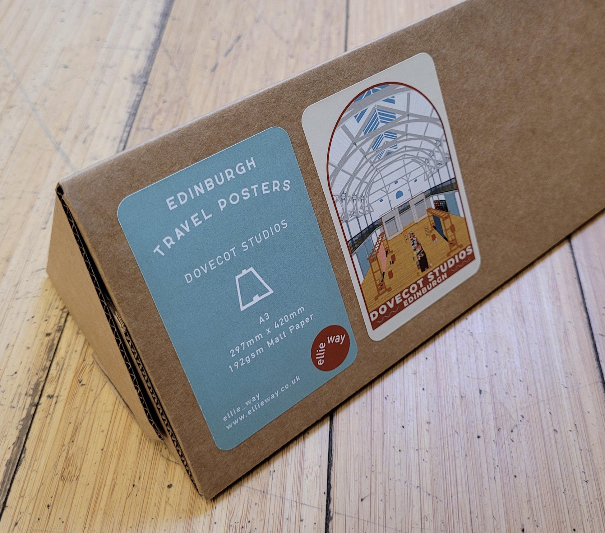 Dovecot is delighted to collaborate with Illustrator Ellie Way, who has designed this beautiful representation of Dovecot Studios.