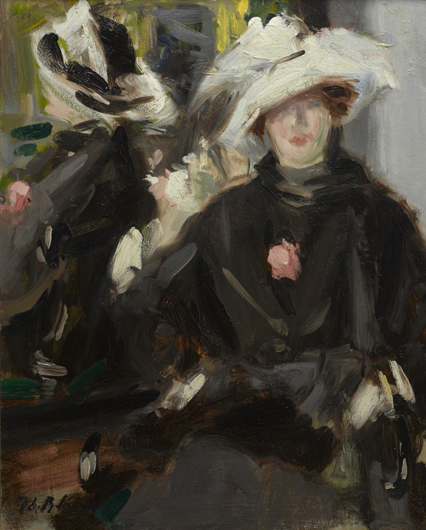 A5 blank notebook featuring FCB Cadell's A Feathered Hat and GL Hunter's Peonies in a Chinese Vase.