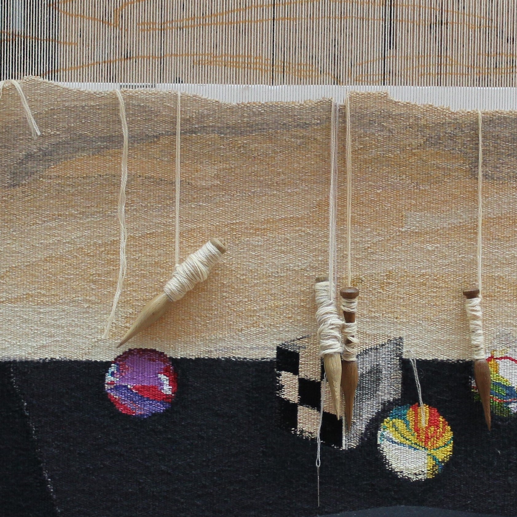 Dovecot's interpretation of Elizabeth Blackadder’s Still Life with Chequered Box, woven by Emma Jo Webster and Elaine Wilson, continues Dovecot’s collaboration with Blackadder and her work. Dovecot first worked with Blackadder in 1966, to weave Still Life (Tulips).